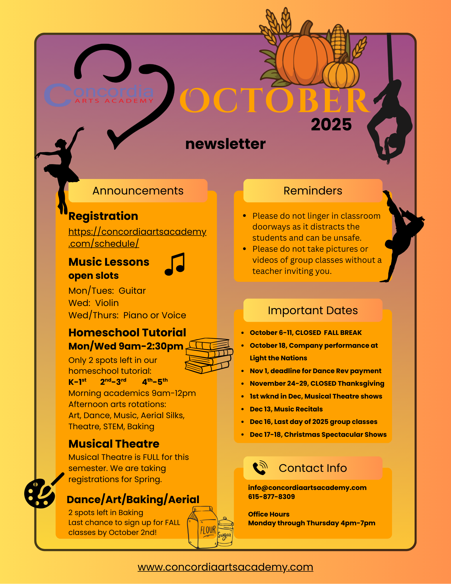 See our dance schedule here: https://www.concordiaartsacademy.com/schedule/