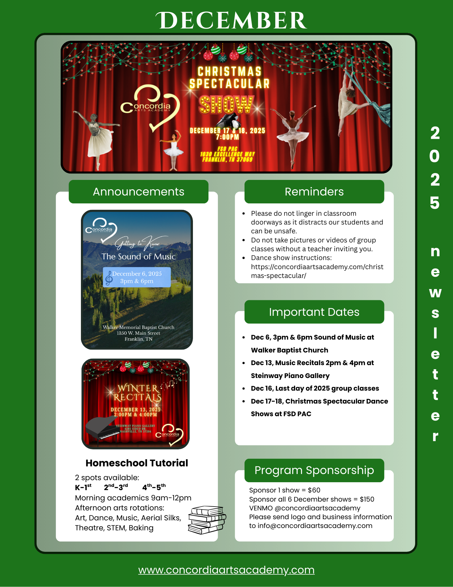 - Dec 17-18: Christmas Spectacular Dance Shows at FSSD PAC